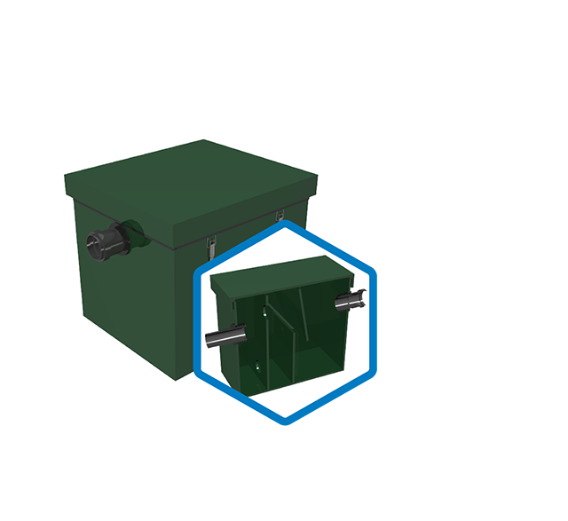Благодаря конструкции жироуловителя и наличию трех камер сепарирования, очистка стока от жира составляет 99%.